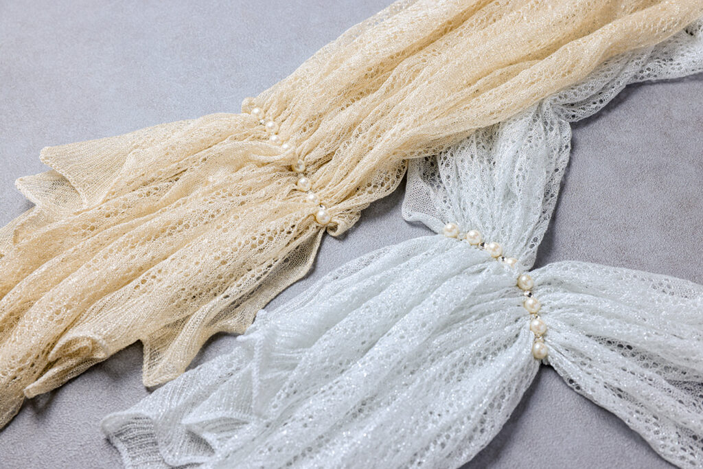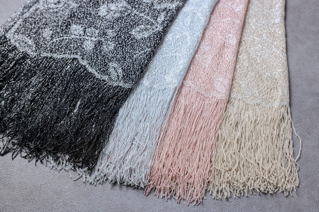 結婚式やパーティーで使えるフォーマルなストールを卸販売しています。どなたにも合わせやすい上品なデザインで、美しい仕上がりにこだわりました。ご希望の商品がございましたら、まずはお問い合わせください。